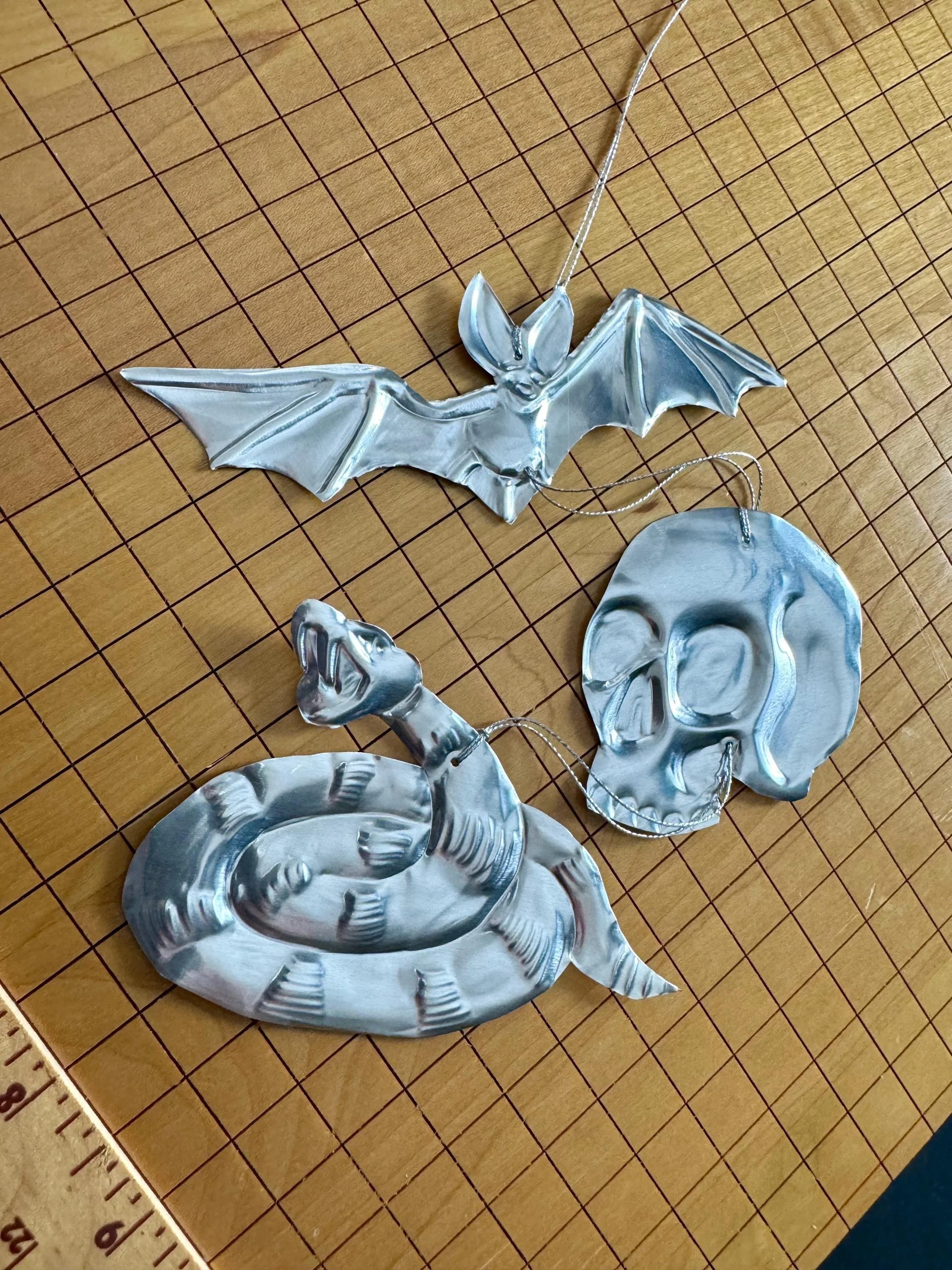 Categories: All Bookmarks Jewelry Greeting Cards Embossed tin Custom Art Stickers Prints Tea Towels Garlands Ornaments All | Bookmarks | Jewelry | Greeting Cards | Embossed tin | Custom Art | Stickers | Prints | Tea Towels | Garlands | Ornaments | Custom Moon For Jessica $45.00 Sold Out Hand Painted Pet Portrait in watercolor, gouache, and mixed media from $59.00 Embossed Tin Bird Garland - hand embossed metal flying bird and flower bunting - folk art tin birds wall banner $50.00 Song Birds illustrated paper garland - bird watcher gift - bird garland art banner $22.00 Chicken garland - illustrated paper garland - pet hens and a rooster art banner - chicken gifts - chicken party decor $20.00 Sold Out Rabbits Garland - illustrated hares paper banner - bunny bunting $18.00 Moon and Moth Handmade Embossed Pressed Tin Wall Decoration $40.00 Moon and Owl Embossed Tin Wall Ornament | Silver tinted Handmade Metal Foil Art | night forest wall hanging $40.00 Woodland animals illustrated paper garland - owl, rabbit, bobcat, deer, mouse, and squirrel forest creatures banner - $20.00 Customizable Sardine Ornament from $30.00 Starling Sticker - nature inspired vinyl sticker with European Starling $4.50 Extra Large Hand block printed Tinned sardine Hanging Tea Towel $20.00 Whimsical Bigfoot Garland Kit - DIY Craft for Camping and Outdoor Enthusiasts - Pacific Northwest Christmas - RV camper gift $20.00 Kitty calling handmade block print 5”x7” card - Just Saying Hi greeting card - incoming call from grumpy cat $9.00 Hand embossed tin sun and moon decoration - large sized smiling celestial themed solar and lunar metal hanging wall accent from $50.00 Gold-Tinted Moon and Moth Handmade Embossed Pressed Metal Wall Decoration $40.00 Mourning Dove in Juniper Tree Print - unframed art print from $12.00 Moth Handmade Embossed Pressed Copper or Tin Wall Decoration $14.00 Bird Handmade Embossed Pressed Copper or Tin Wall Decoration in Folk art style from $14.00 Illustrated Cats Magnetic Bookmarks - set of 3 handmade bookmarks $12.00 Handmade Tea Towel with Bigfoot and Mushroom Design - hand block printed quirky Big Foot gift - - Sasquatch in the PNW - Camper RV decor $25.00 Silkie Chicken art print - print of original hand painted illustration of a fluffy white silkie chicken $15.00 Embossed gold tin Crow and Mushrooms- hand pressed foil hanging decoration $42.00 Celestial Gold Moon and Owl embossed tin wall decor - hand pressed silver foil wall hanging $40.00 Hand painted Sardine coaster - ceramic tinned fish tile from $13.00 Hand painted Sasquatch coasters - ceramic Bigfoot tiles from $15.00 Painted Horses paper garland - Illustrated Equestrian bunting $20.00 Sold Out Unicorn heart shaped pendant necklace - girls fairy tale party gift $15.00 Witchy Dark Academia Handmade Embossed Pressed Tin Wall Decoration with snake, skull, and bat $40.00 Handmade Tinned Fish Sardine Pendant Necklace | Quirky Polymer Clay Sardine Can Charm | Unique Foodie Jewelry Gift $40.00 Whimsical Elephant Sun Relief Art - Unique Hand-Pressed Tin Wall Ornament - Smiling sun and elephant embossed metal decor $40.00 Low Country Boil hand block printed Tea Towel | Cajun art | Louisiana hosting decor $20.00 Equestrian illustrated postcard size prints- 5 x 7” art prints of horses and florals - Set of 5 single page notecards $14.00 Silkie heart shaped pendant necklace - antique style silkie chicken portrait $15.00 Hand Painted Male and Female Goldfinch Bookmark - Unique Bird Lovers Gift featuring illustrated goldfinch pair and hand painted gold accents $8.00 Skeleton garland - cowboys and coquette skellies illustrated paper garland - western and girly spooky art banner - Halloween party decor $18.00