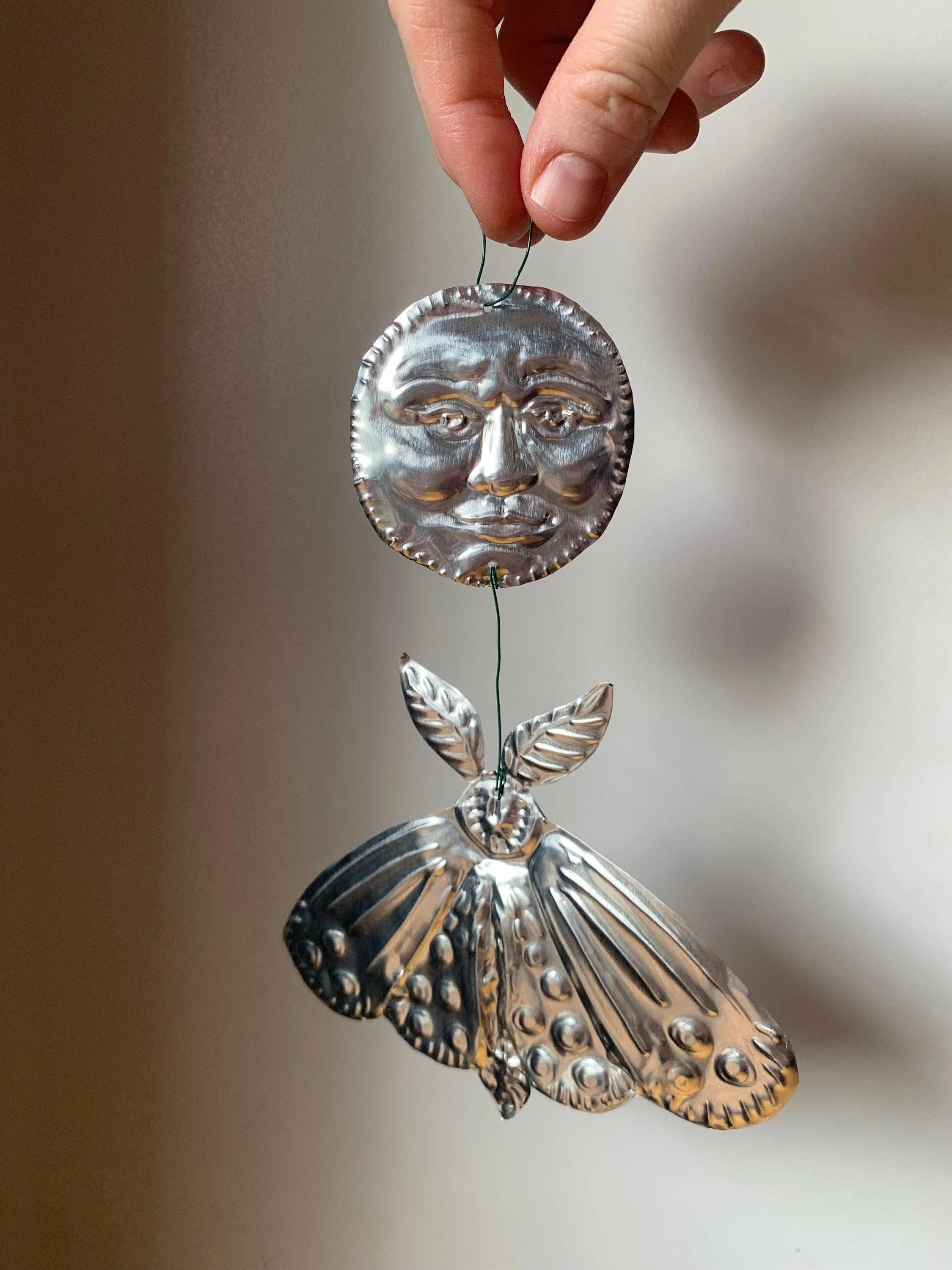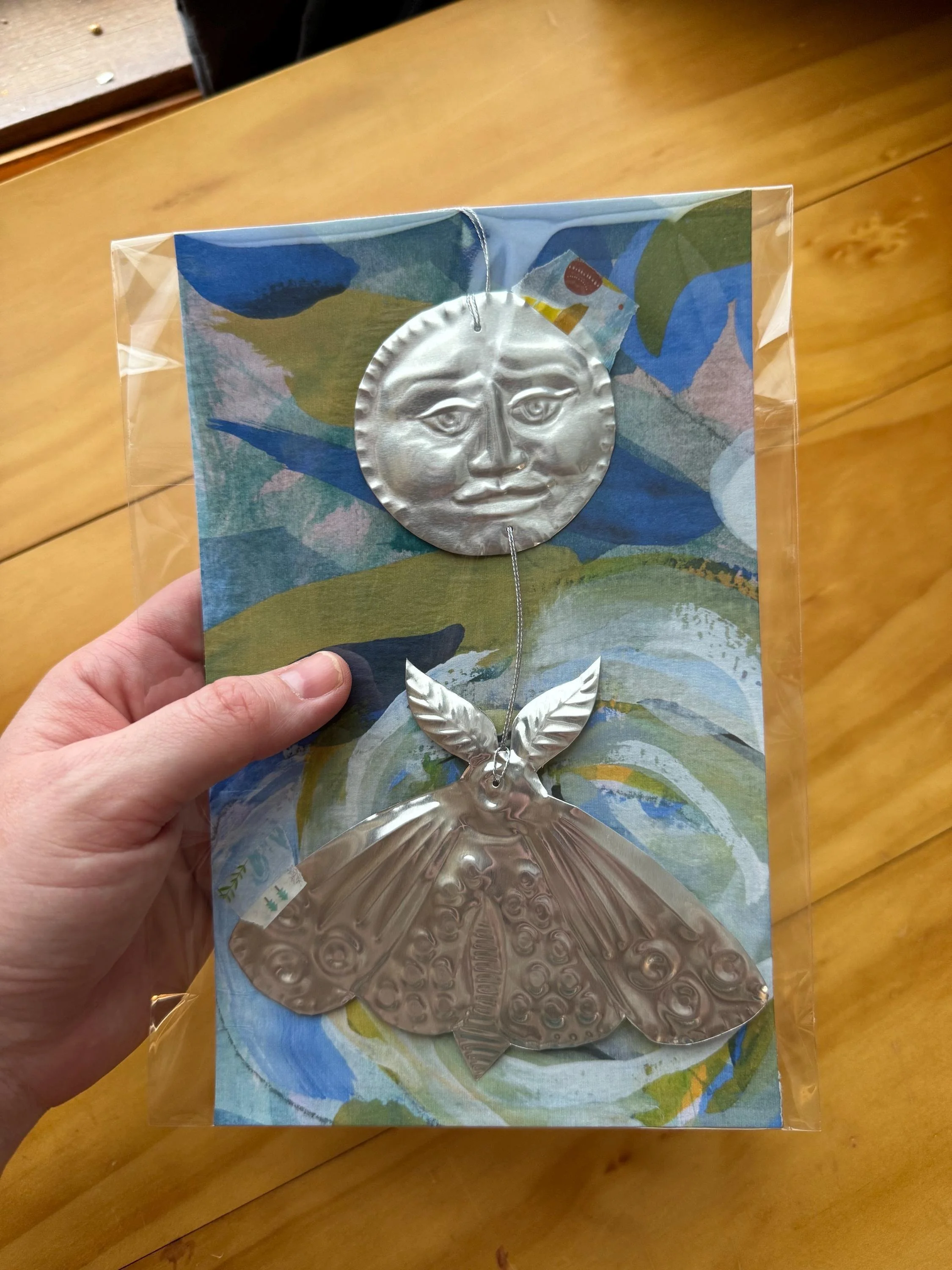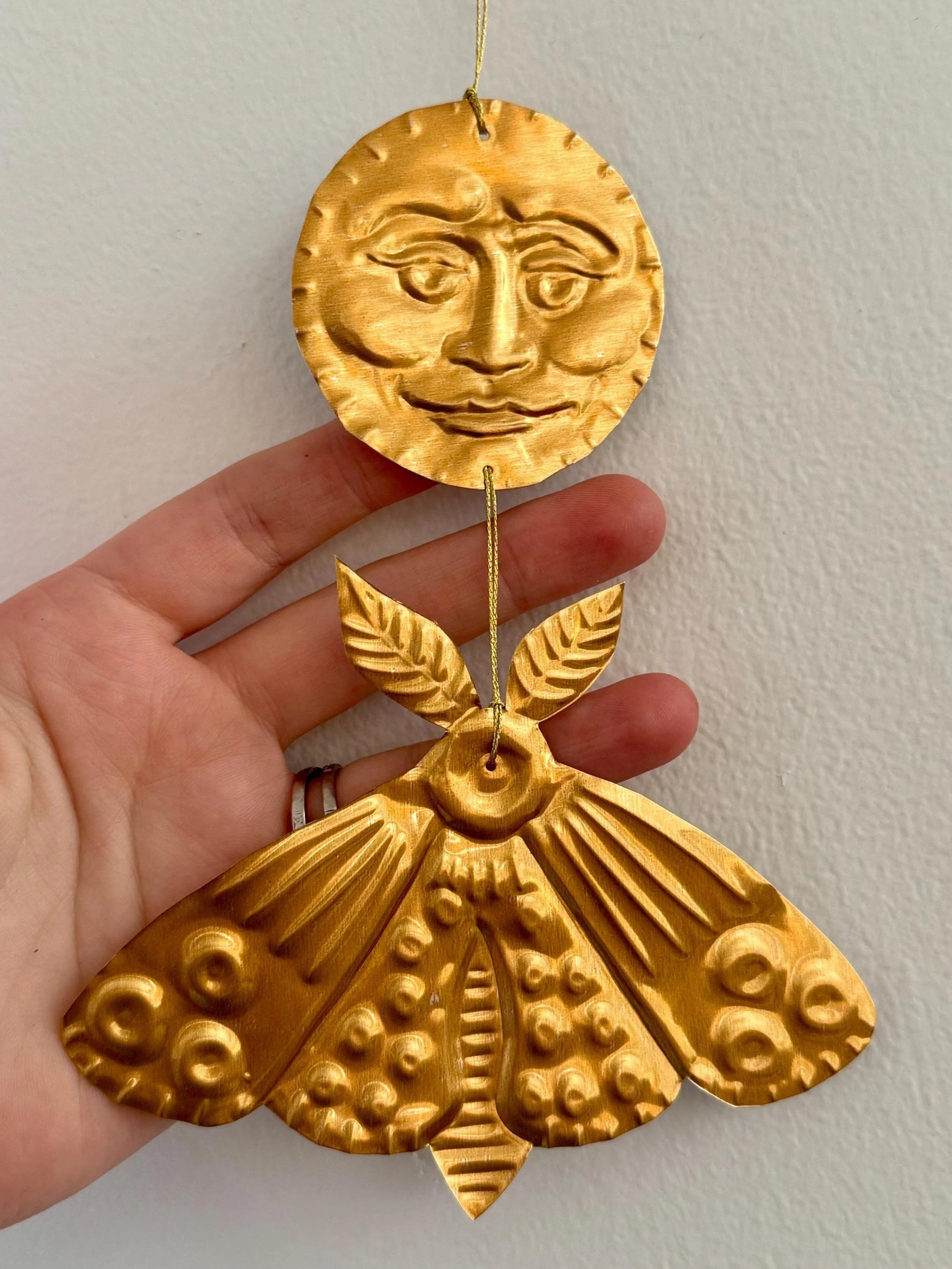 Custom 8” embossed crescent moon with “XI•VII•MMXV” embossed along edge